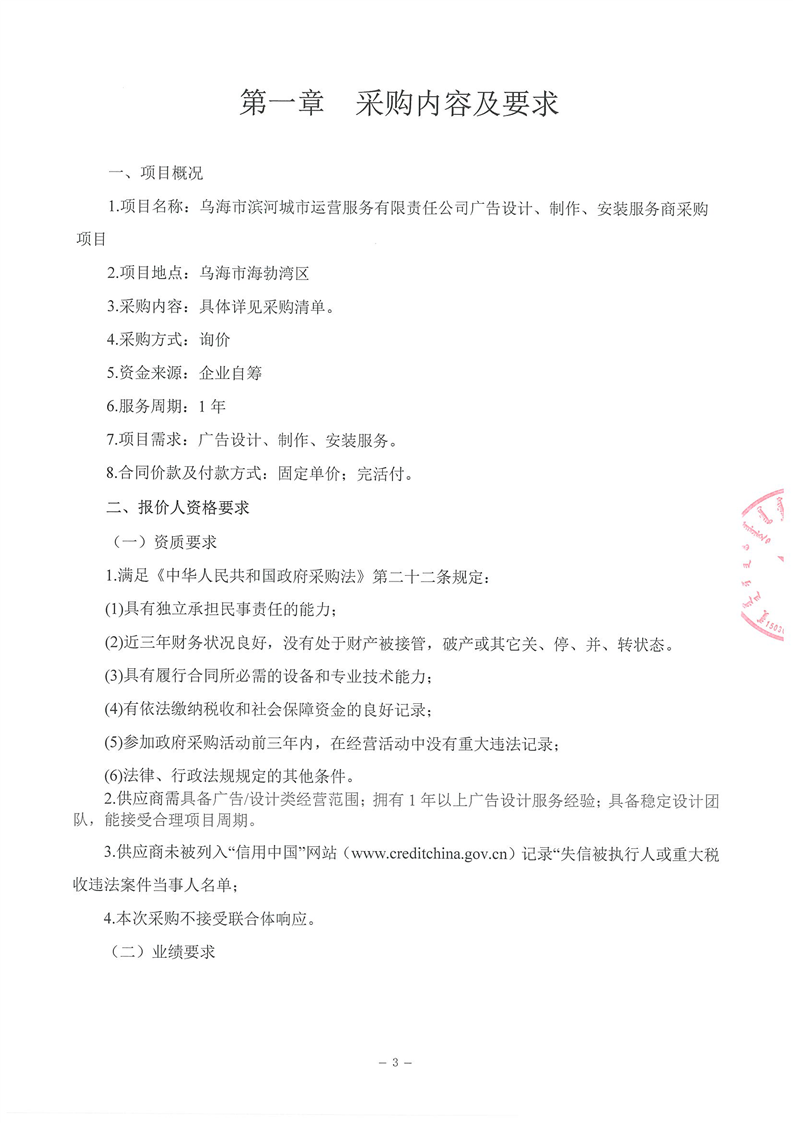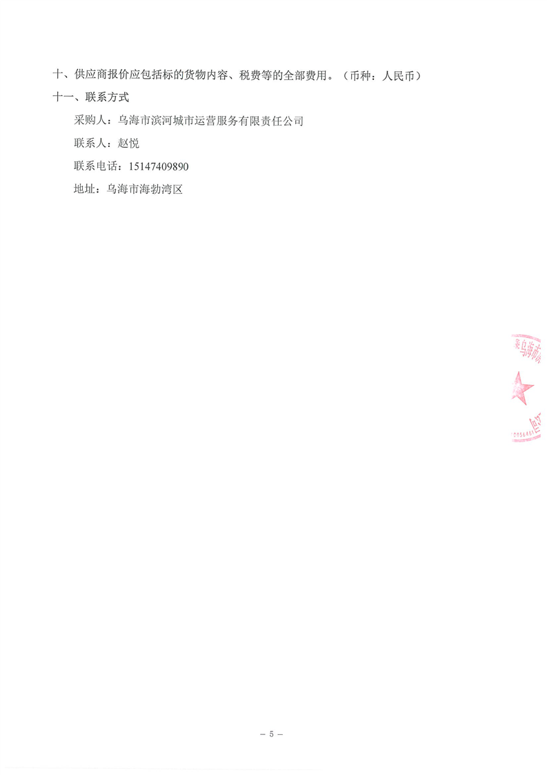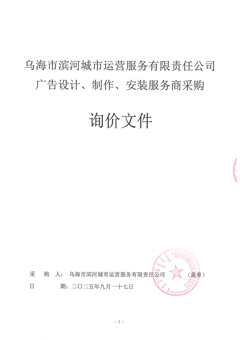 - 2025-07-17烏海市濱河城市運營服務(wù)有限責任公司電梯維保服務(wù)商采購詢價文件