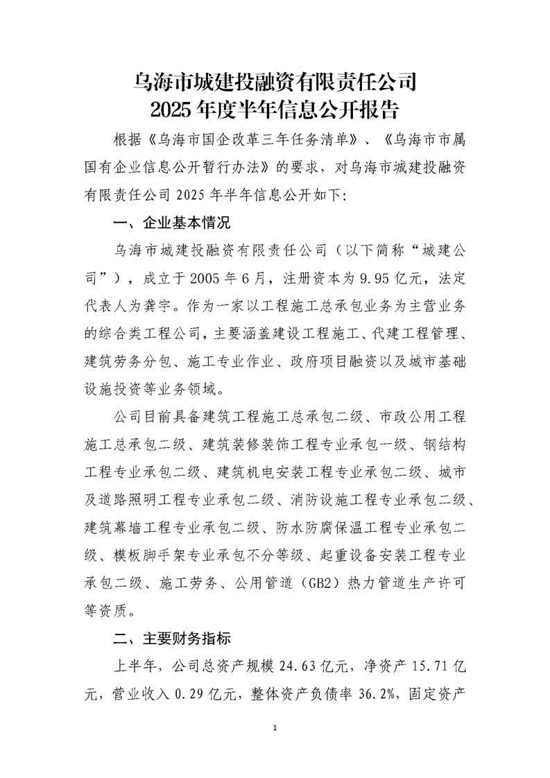 - 2025-04-10烏海市城建投融資有限責(zé)任公司2024年度信息公開報(bào)告